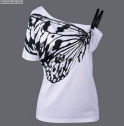 2017 Date Été Coton Top Shirts Femmes T Chemises Skew Col Papillon Imprimer T-shirt Dames Plus La Taille T-shirt T-shirts Tops