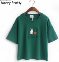 Joyeux assez harajuku t-shirt femmes style coréen t-shirt tee kawaii cat broderie coton tops shirt t-shirt feminina ventes chaudes