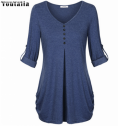 Vente chaude T-shirt Femmes 2017 D'été De Mode Femme T-shirt bouton Femelle À Manches Longues T-shirt Élégant Longues Hauts T-shirt Femme
