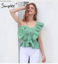 Simplee Une épaule blouse chemise femmes tops Été irregural rayé chemise blouse chemise femme Élégant ruches zipper blusas
