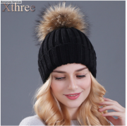Xthree vison et renard boule de fourrure cap pom poms chapeau d'hiver pour femmes fille de chapeau tricoté bonnets cap brand new épais femelle cap