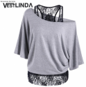 Vestlinda skew col dentelle t-shirt femmes top t-shirts à manches courtes solide t-shirt femmes clothing casual t-shirt d'été blusa