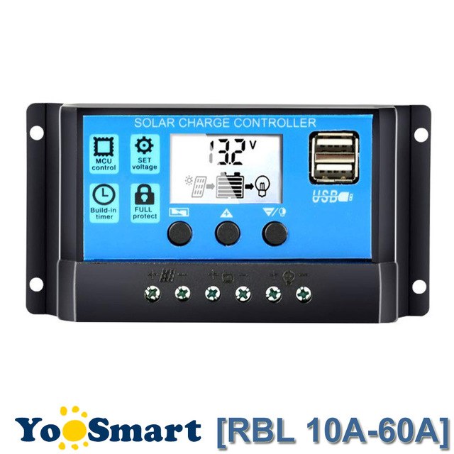 Contrôleur de Charge solaire 30/40/50/60/100A MPPT double affichage LCD USB 12 V 24