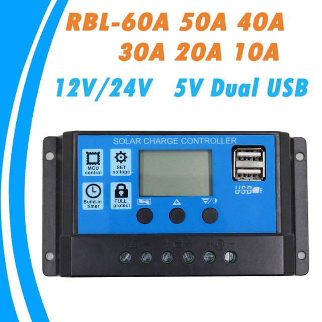 Contrôleur de Charge solaire 30/40/50/60/100A MPPT double affichage LCD USB 12 V 24