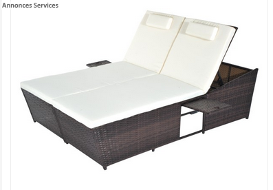Ce bain de soleil 2 places en PE rotin tressé est parfait pour vous se détendre agréablement en plein air. Il est possible d’ajuster l’inclinaison du dossier pour que vous choisissiez une position qui vous convient bien. Les 2 coussins de siège et 2 coussins de dossier sont tous déhoussables et lavables grâce au zip. D’ailleurs, il y a une tablette escamontable de chaque côté du lit. Donc, qu’attendez-vous ?