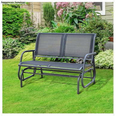 Ce banc à bascule pour 2 personnes avec une belle apparence est idéal pour l’extérieur. La durabilité est garantie grâce à sa construction en tube d’acier qui est très épais et textilène de bonne qualité. Ce sera parfait de reposer sur ce fauteuil en profitant du soleil avec ta famille ou ton amie, n’est-ce pas ? Alors, qu’est-ce que vous attendez encore ?