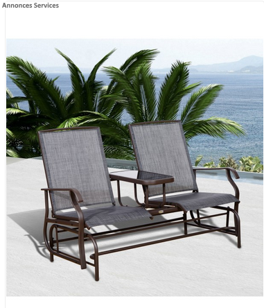 Cette berçante double sera très utile pour vous si vous envisagez de reposer à l’extérieur ou à l’intérieur de votre maison. Avec une petite table basse adapté au milieu qui vous permet de mettre le café, les aliments, etc......, c’est agréable et pratique. Les matériaux sont solides, surtout le tissu est en texilene qui résiste à la haute température et au rayon ultraviolet. Vous serez satisfait en utilisant notre produit.