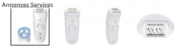 Livré avec Notice, Tête d'épilation, Brosse exfoliante, Trousse de rangement, Adaptateur secteur