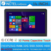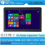 Intel Celeron 1037u 1.8 Ghz CPU14 pouces écran tactile tout en un pc ordinateur de bureau fabriqués en chine 4G RAM 16G SSD 320G HDD